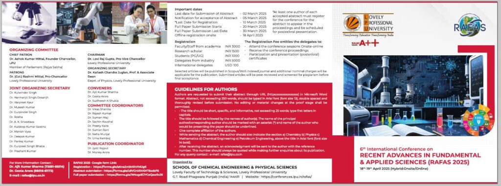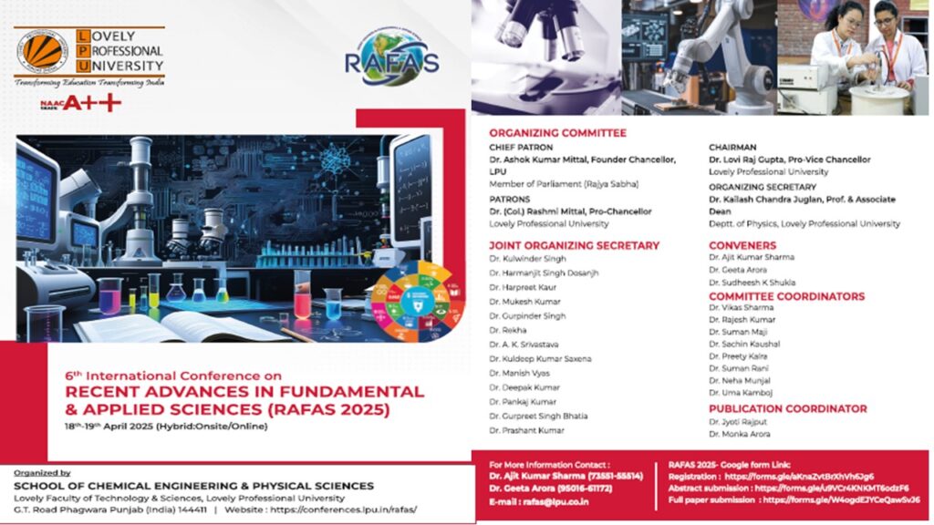 6th International Conference on Recent Advances in Fundamental and Applied Sciences (RAFAS 2025), April 18-19, 2025, as Convenor.