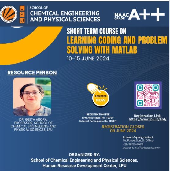 • A Short-Term Course on Learning coding and problem solving with MATLAB, 10-15 June 2024.
