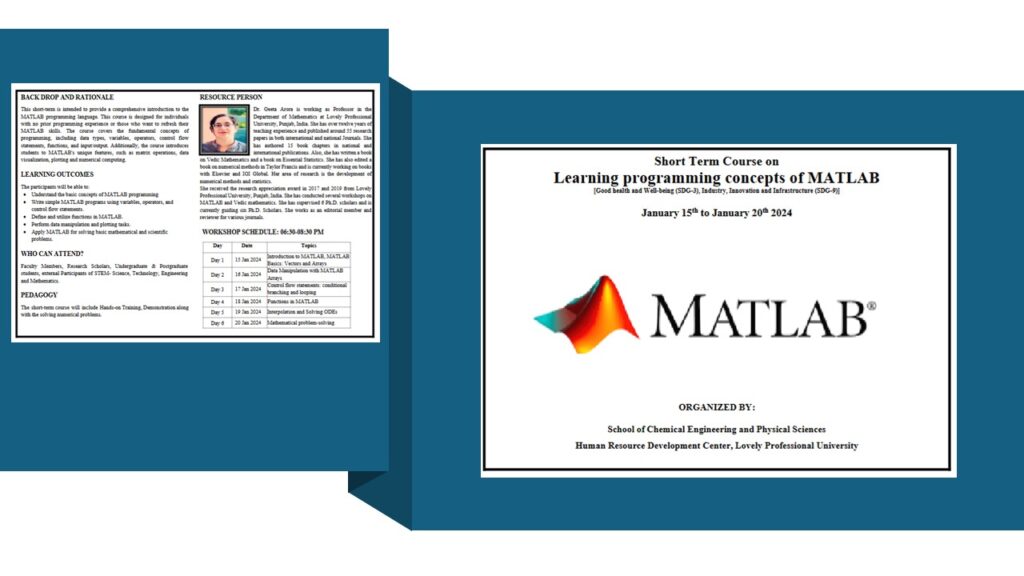 • An International Six days Short Term Course on MATLAB, 15-20th January 2024.